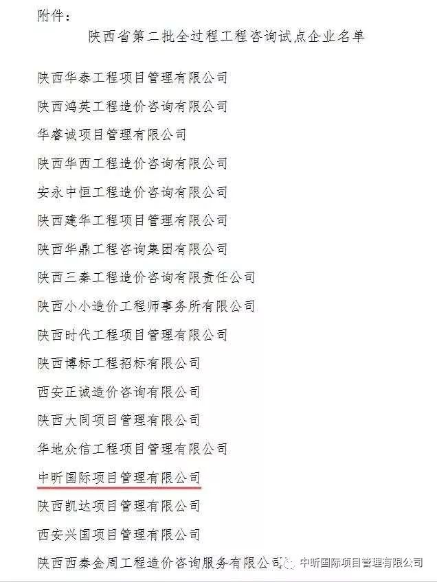 根据《关于开展全过程工程咨询试点的通知》(陕建发〔2018〕388号)精神,经住房城乡建设厅研究确定,开云网页版页面登录项目管理有限公司等多家企业为我省第二批全过程工程咨询试点企业。